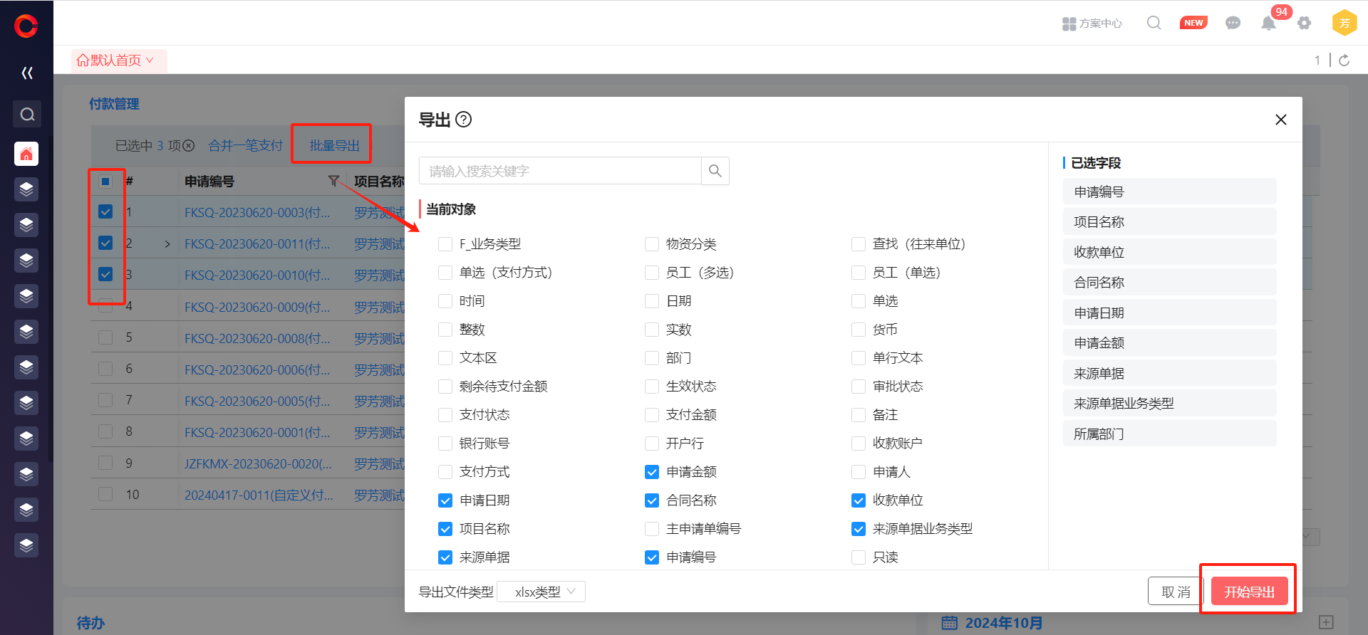 ● 付款管理可以批量導(dǎo)出選定條目