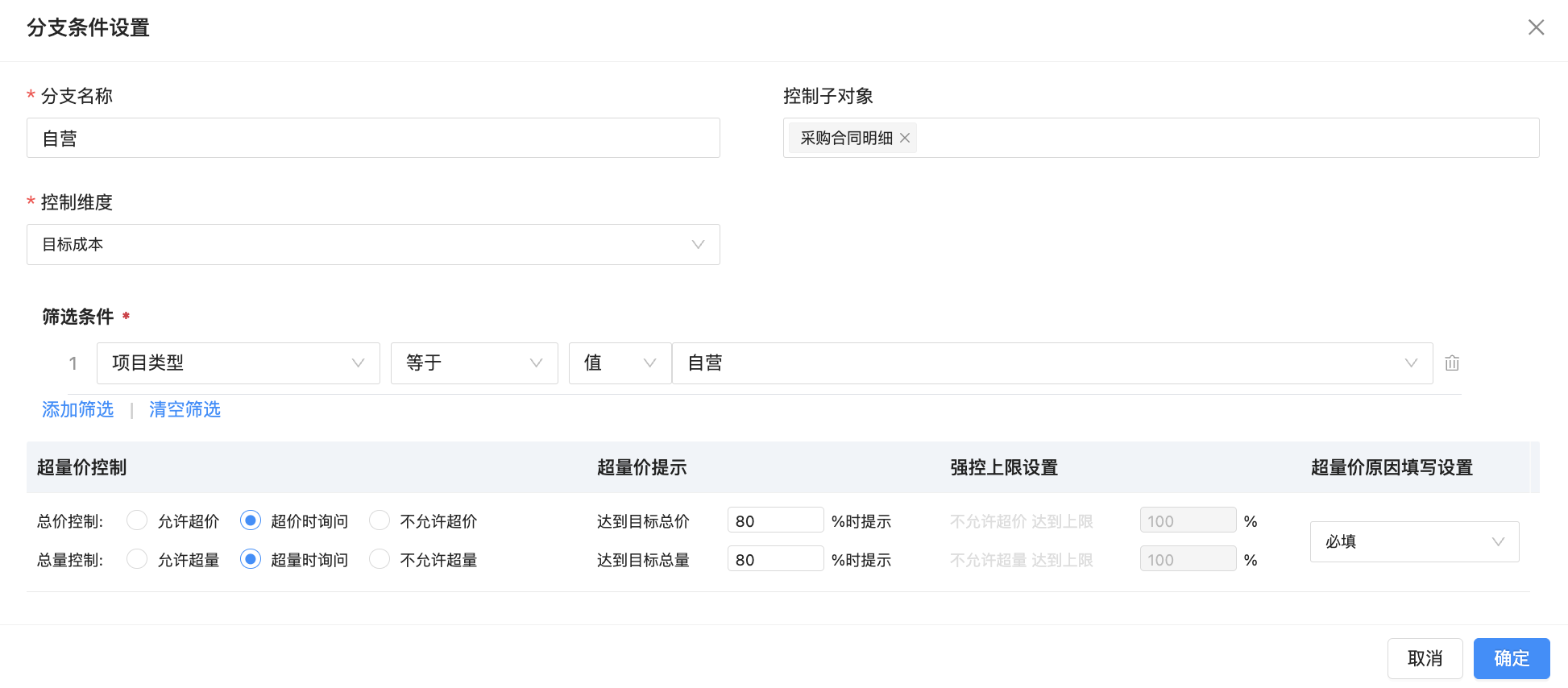 ● 手動(dòng)補(bǔ)錄成本清單明細(xì)支持限制范圍