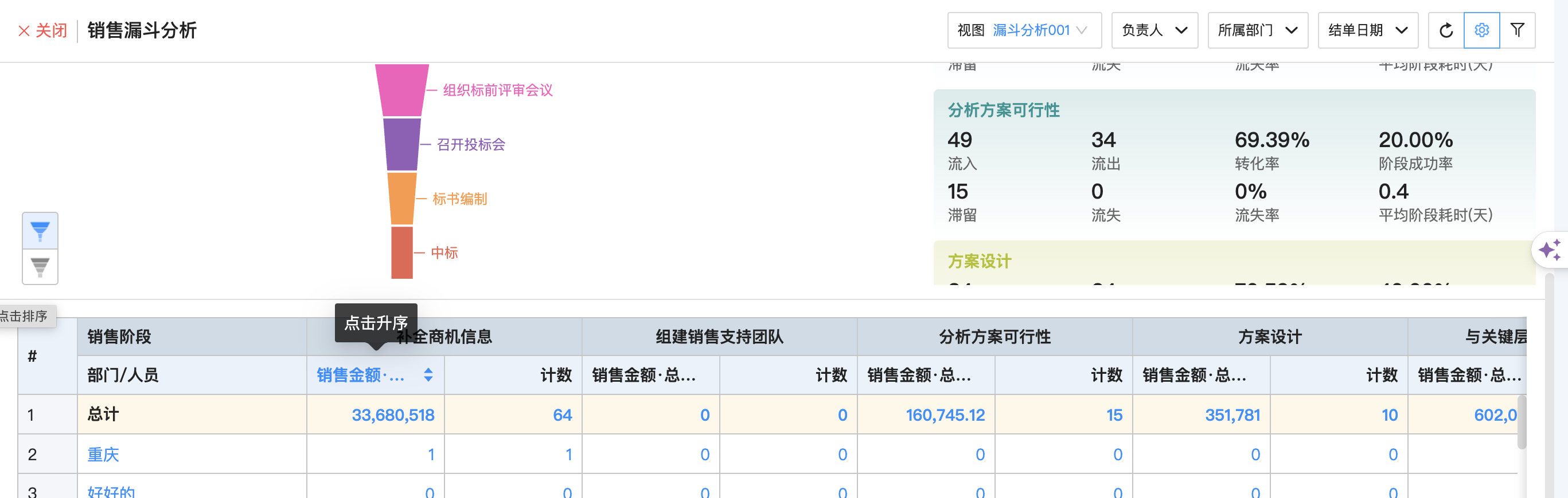 ● 銷售漏斗列表支持排序