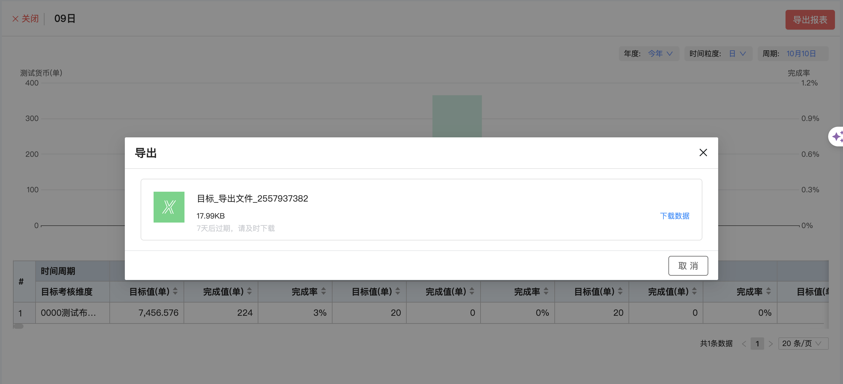 ● 目標(biāo)完成統(tǒng)計(jì)組件支持導(dǎo)出
