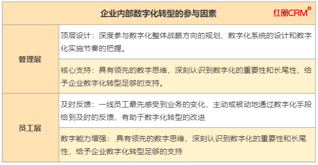 數(shù)字化轉(zhuǎn)型是一項(xiàng)需要長期持續(xù)且異常復(fù)雜的工作,對(duì)于管理層而言,其主要作用是轉(zhuǎn)型的頂層設(shè)計(jì)和推動(dòng)支持。對(duì)于員工而言,需要增強(qiáng)自身的數(shù)字化相關(guān)能力并及時(shí)反饋。