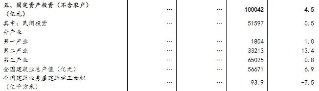 分產(chǎn)業(yè)看,第一產(chǎn)業(yè)投資1804億元,同比增長(zhǎng)1.0%;第二產(chǎn)業(yè)投資33213億元,增長(zhǎng)13.4%;第三產(chǎn)業(yè)投資65025億元,增長(zhǎng)0.8%。