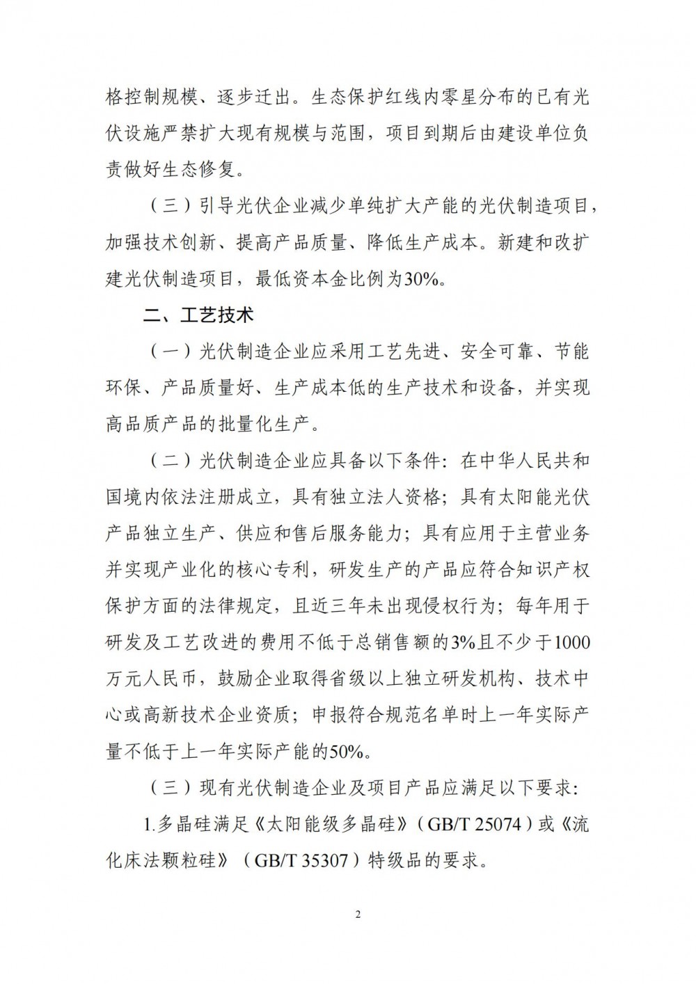 引導(dǎo)光伏企業(yè)減少單純擴(kuò)大產(chǎn)能的光伏制造項(xiàng)目,加強(qiáng)技術(shù)創(chuàng)新、提高產(chǎn)品質(zhì)量、降低生產(chǎn)成本。新建和改擴(kuò)建光伏制造項(xiàng)目,最低資本金比例為30%。