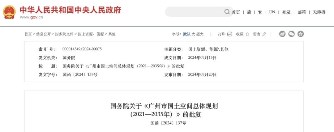 行業政策?|?國務院批復!廣州市國土空間總體規劃!
