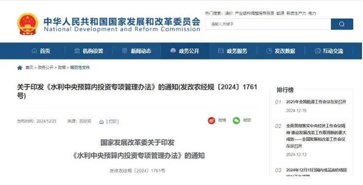 行業(yè)政策?|?國家發(fā)改委發(fā)文!加強水利中央預算內投資專項管理!