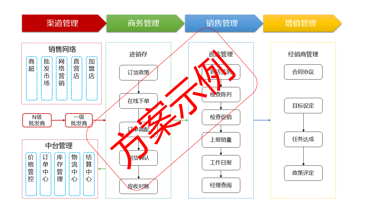 (品牌商:銷售渠道管理、經(jīng)銷商庫(kù)存、開(kāi)發(fā)/掌控終端門店、訂單上報(bào)、產(chǎn)品鋪市)